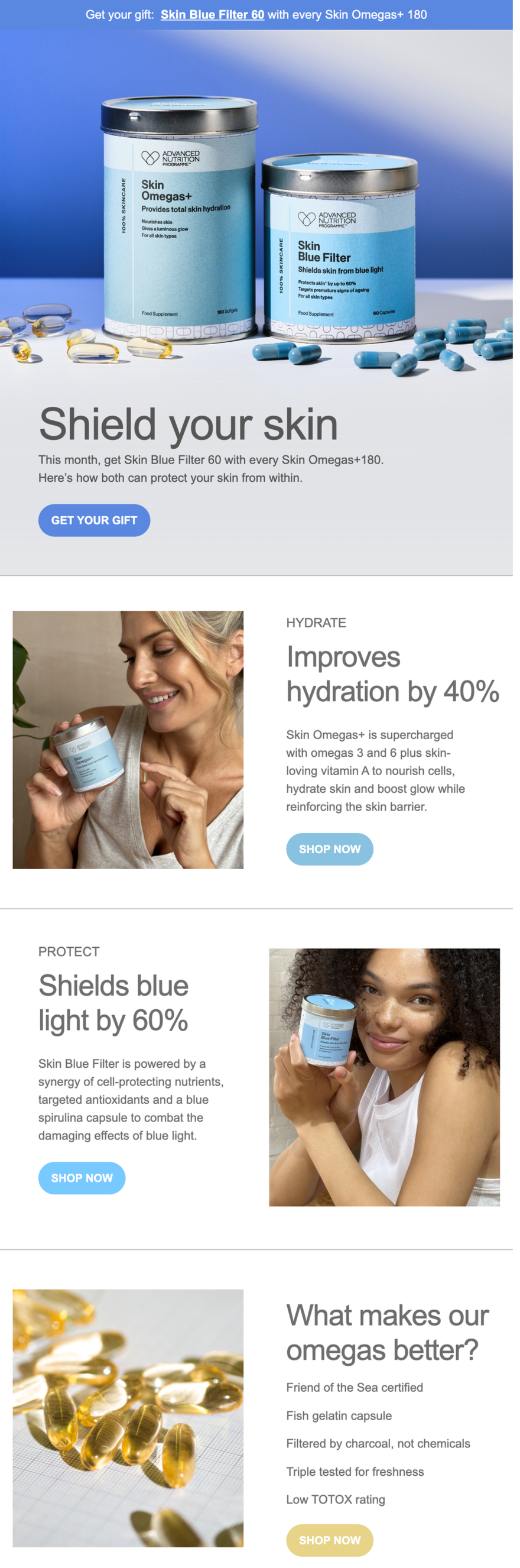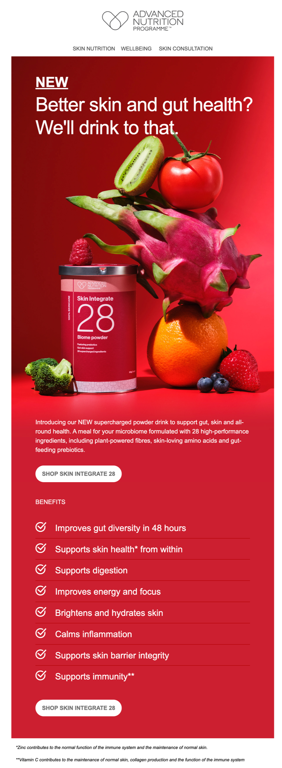 I worked alongside the creative team to launch NEW Skin Integrate 28 for Advanced Nutrition Programme™, a prebiotic powder. I created a full brand campaign, including launch content for D2C and B2B audiences, a campaign tagline, print assets for PR events, scripts for launch videos and web copy.